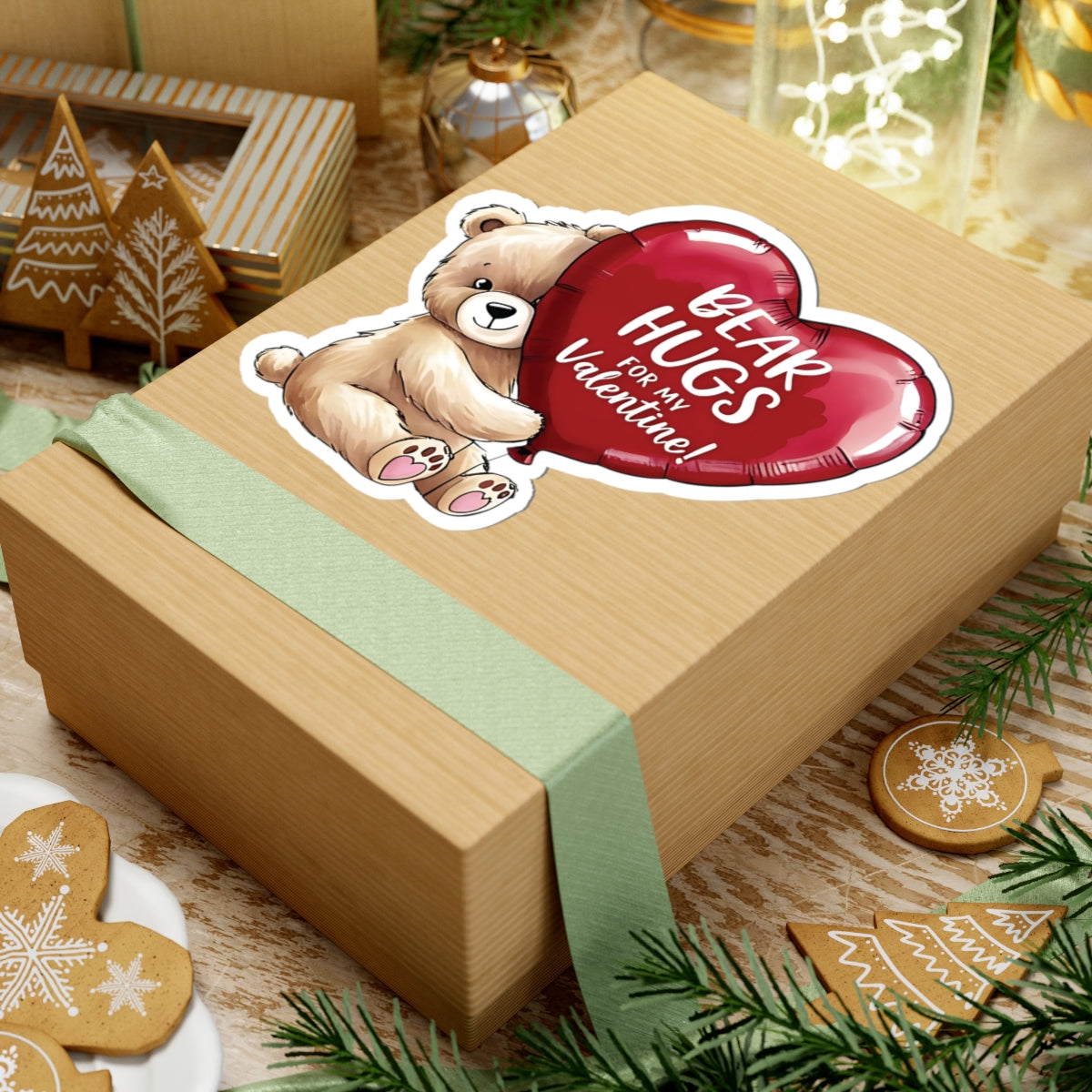 Bear Hugs Sticker, Valentines Day Cute Animal Love Decal, Gift For Her Him, Romantic Kiss Cut Sticker Laptop Journal Water Bottle Art