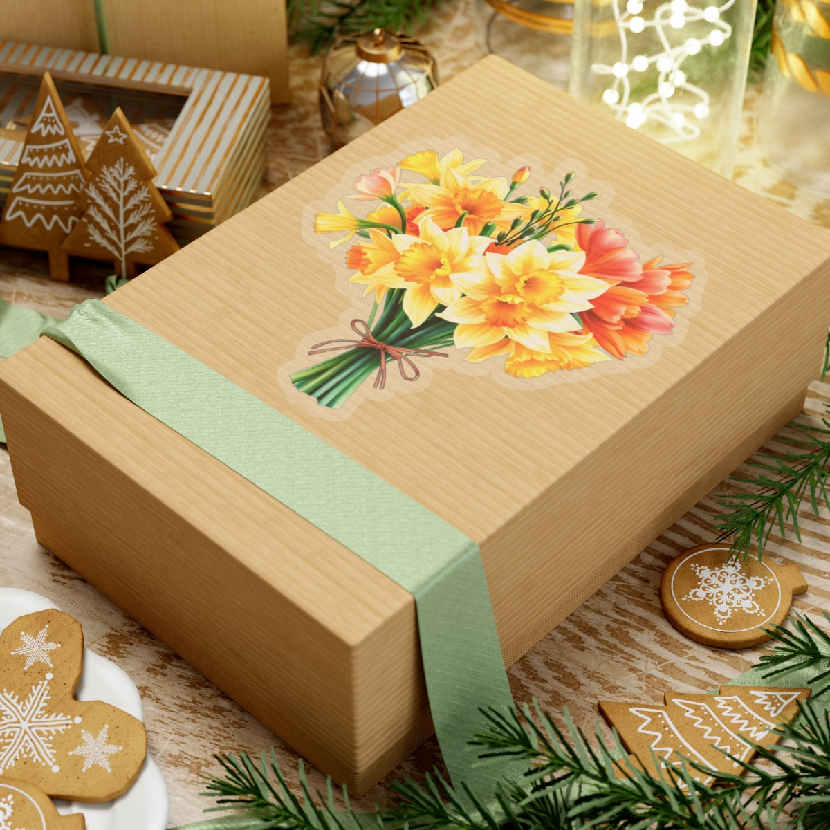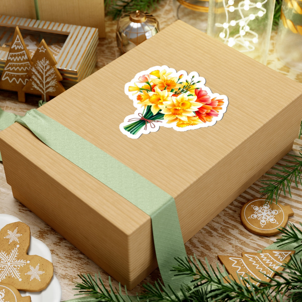 Crafted from premium vinyl, this sticker is designed to be both durable and waterproof, ensuring it withstands daily use without losing its charm. The high-quality material provides a smooth, matte finish that enhances the intricate details of the daffodil bouquet, making it a standout addition to any item.