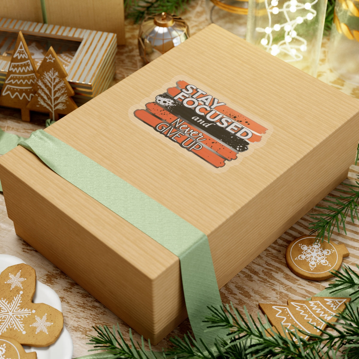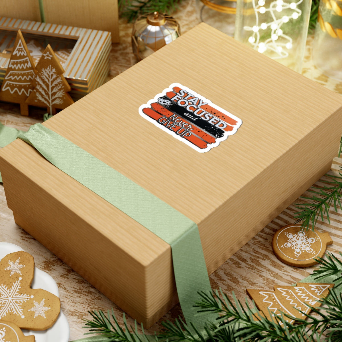 Fuel your drive and inspire perseverance with our 'Stay Focused and Never Give Up' sticker. This empowering design serves as a daily reminder to maintain focus and resilience, perfect for personalizing your belongings with a touch of motivation.